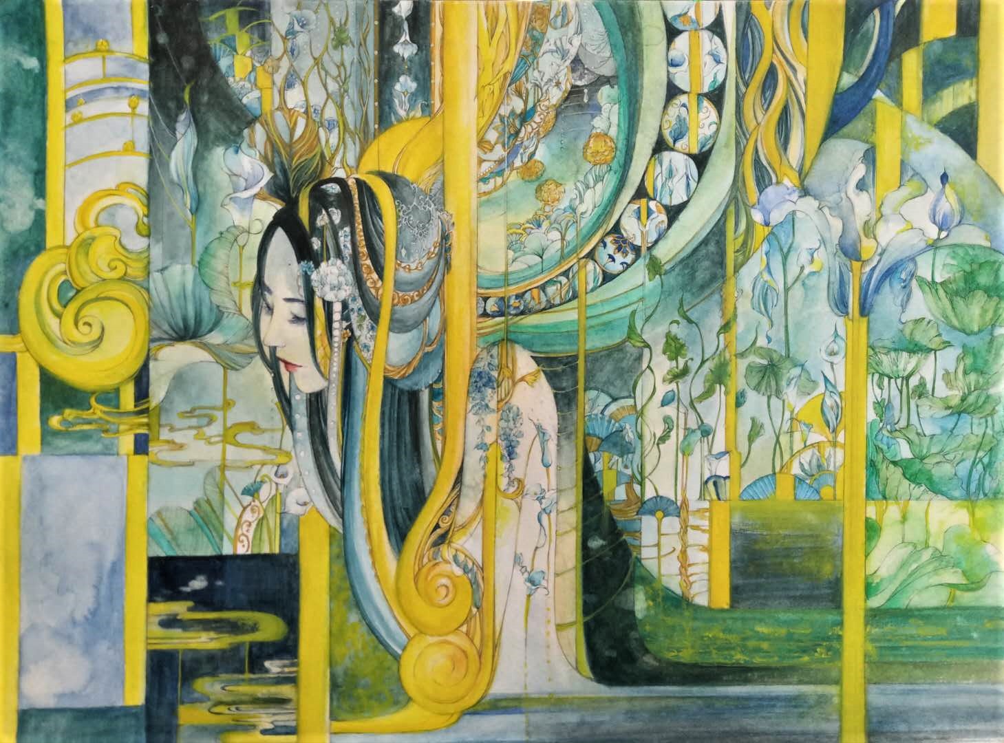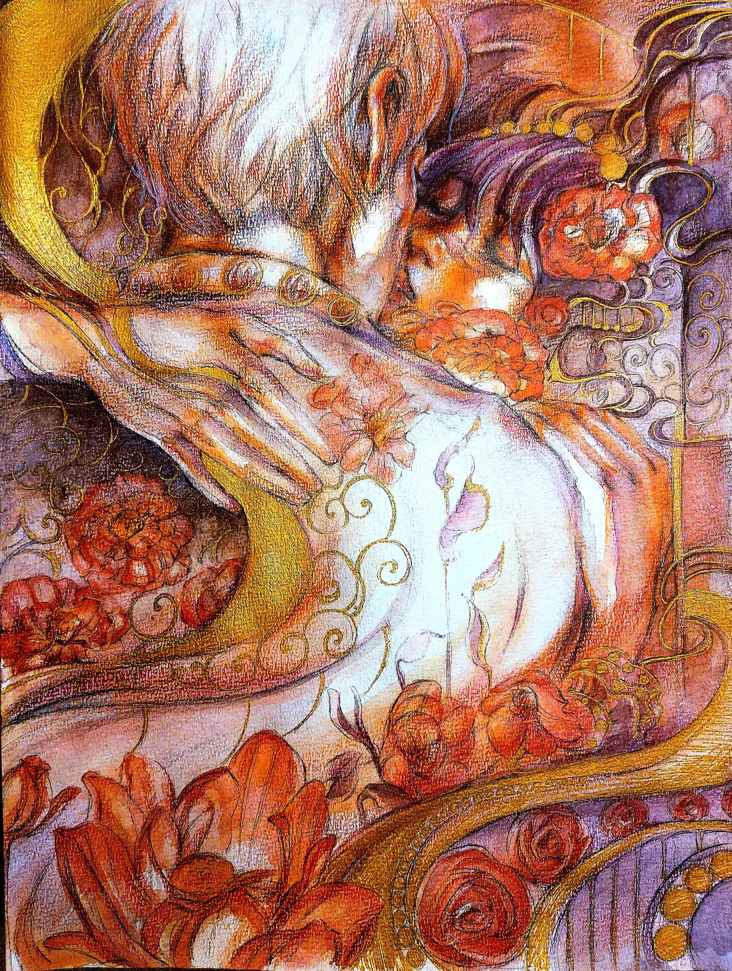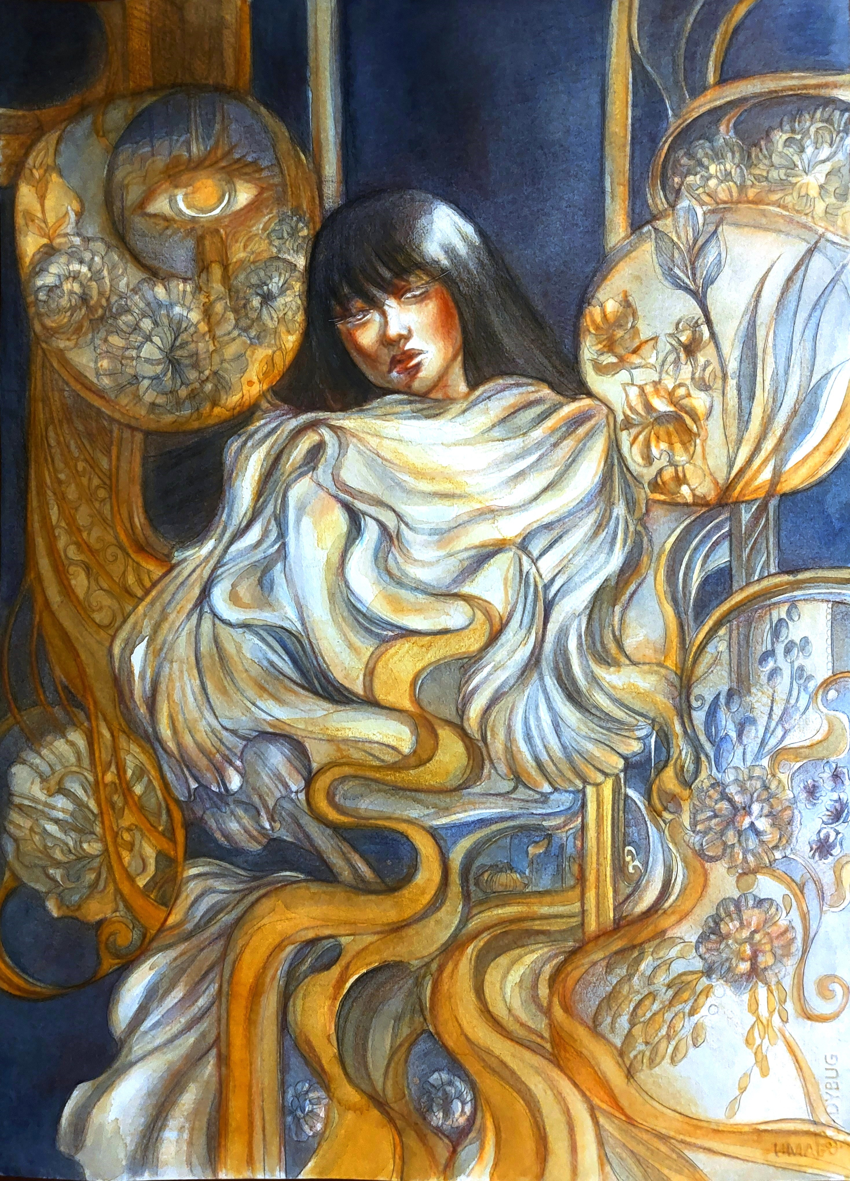 Watercolor, Color Pencil, Gold Ink, Paper