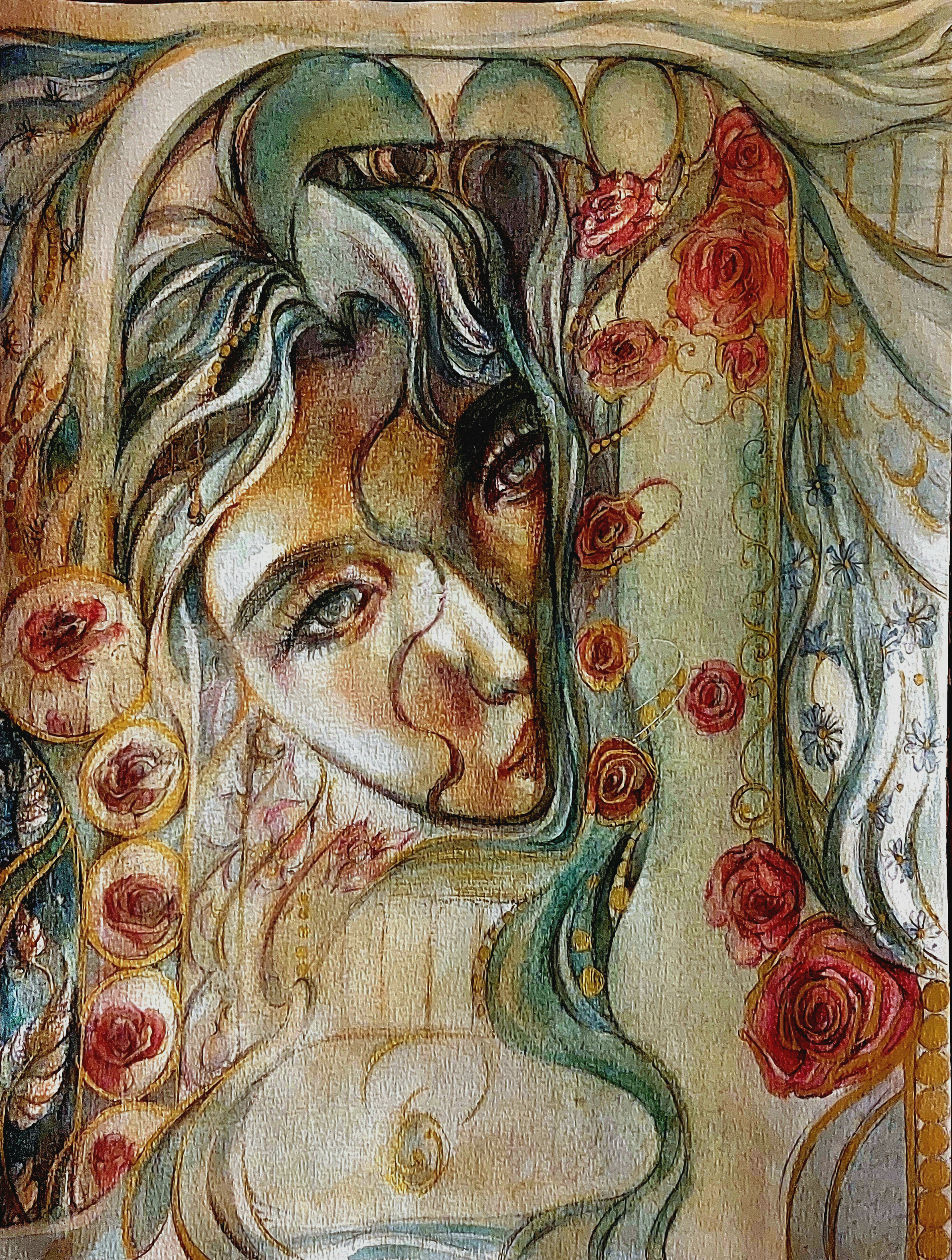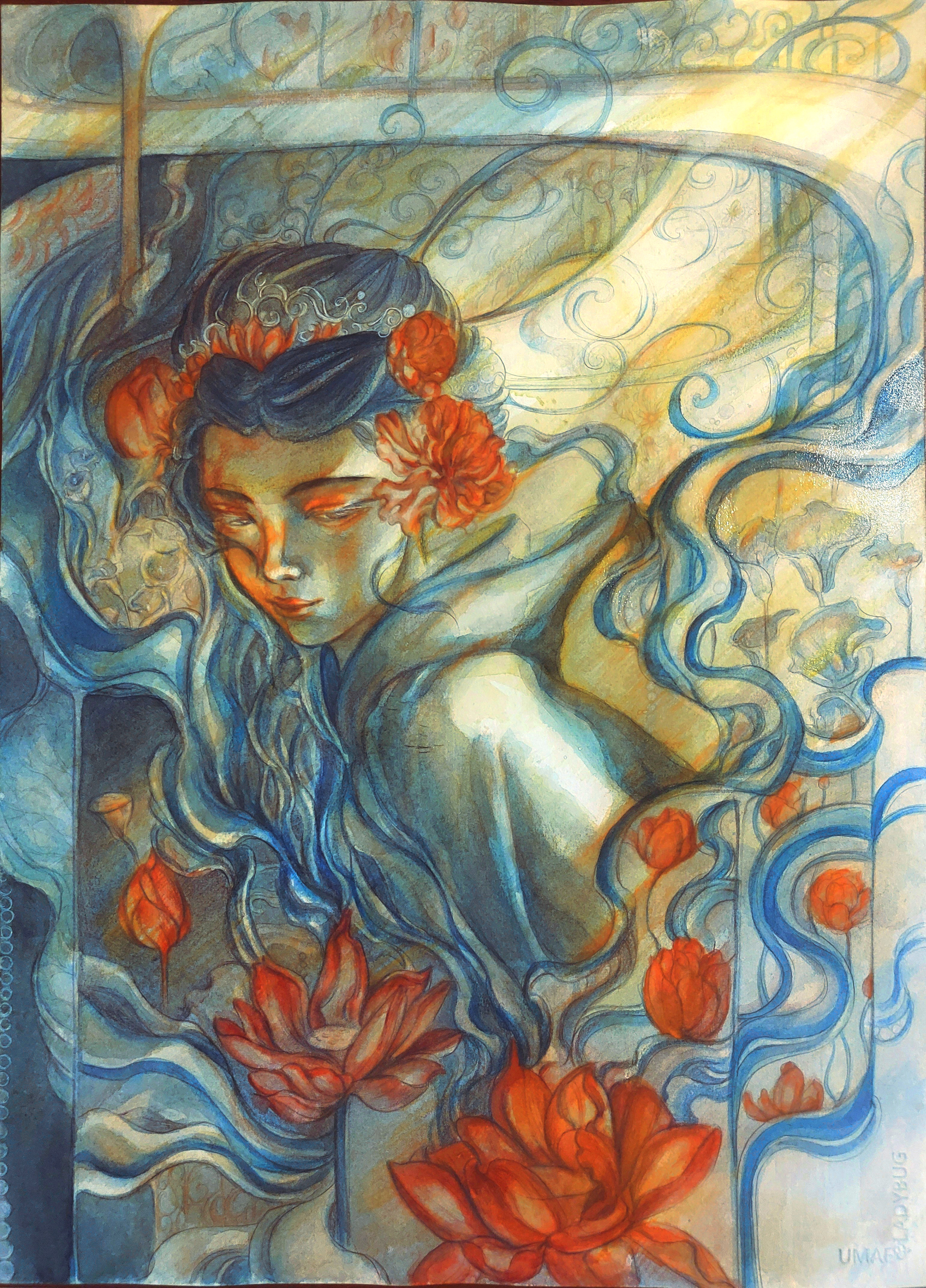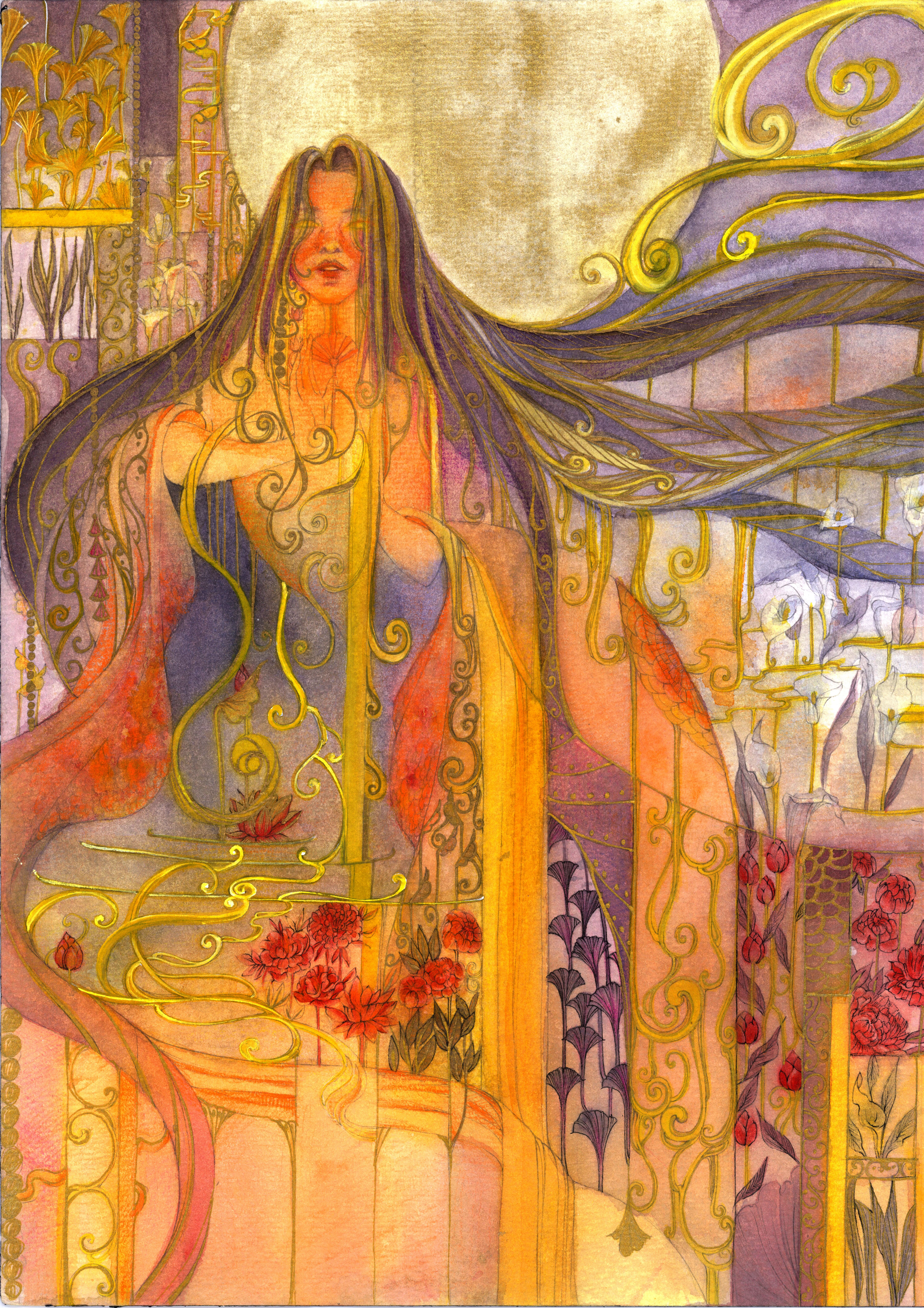 Watercolor, Color Pencil, Gold Ink, Paper